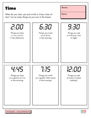 Listing worksheets are just as simple as they sound: students write down words for each of the prompts on the page. You can ask them to write as many words as possible or set a targeted number of words to list. Listing activities can be completed solo, in pairs or in small groups. You can make a game of the activity by setting a timer and/or allocating points for unique answers only.
