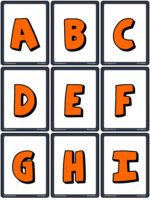 This set of alphabet flashcards includes the uppercase letters A to Z in a bright orange, bold, fun font.
