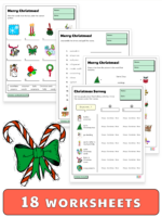 Read more about our worksheets in general or see below for more details about the Christmas set.