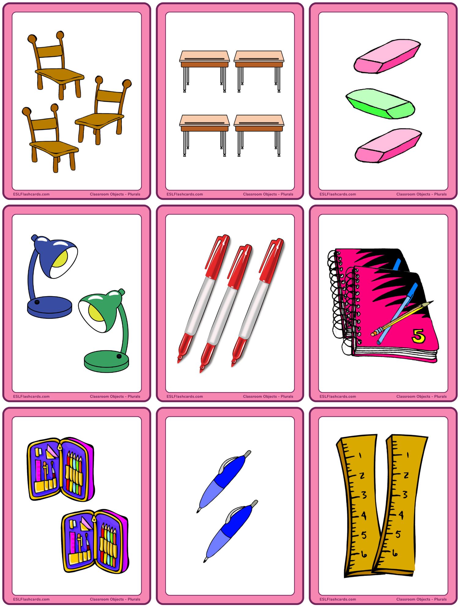 A larger set of Classroom Objects flashcards is available, with mainly singular objects.