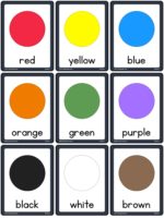 Like the flashcards in Colours – Set A, this set of images shows only a simple shape and a single colour: no nouns, no objects, just the target colour presented in a dot shape. However, the colour words in this flashcard set go a little beyond the commonly taught vocabulary of Set A.