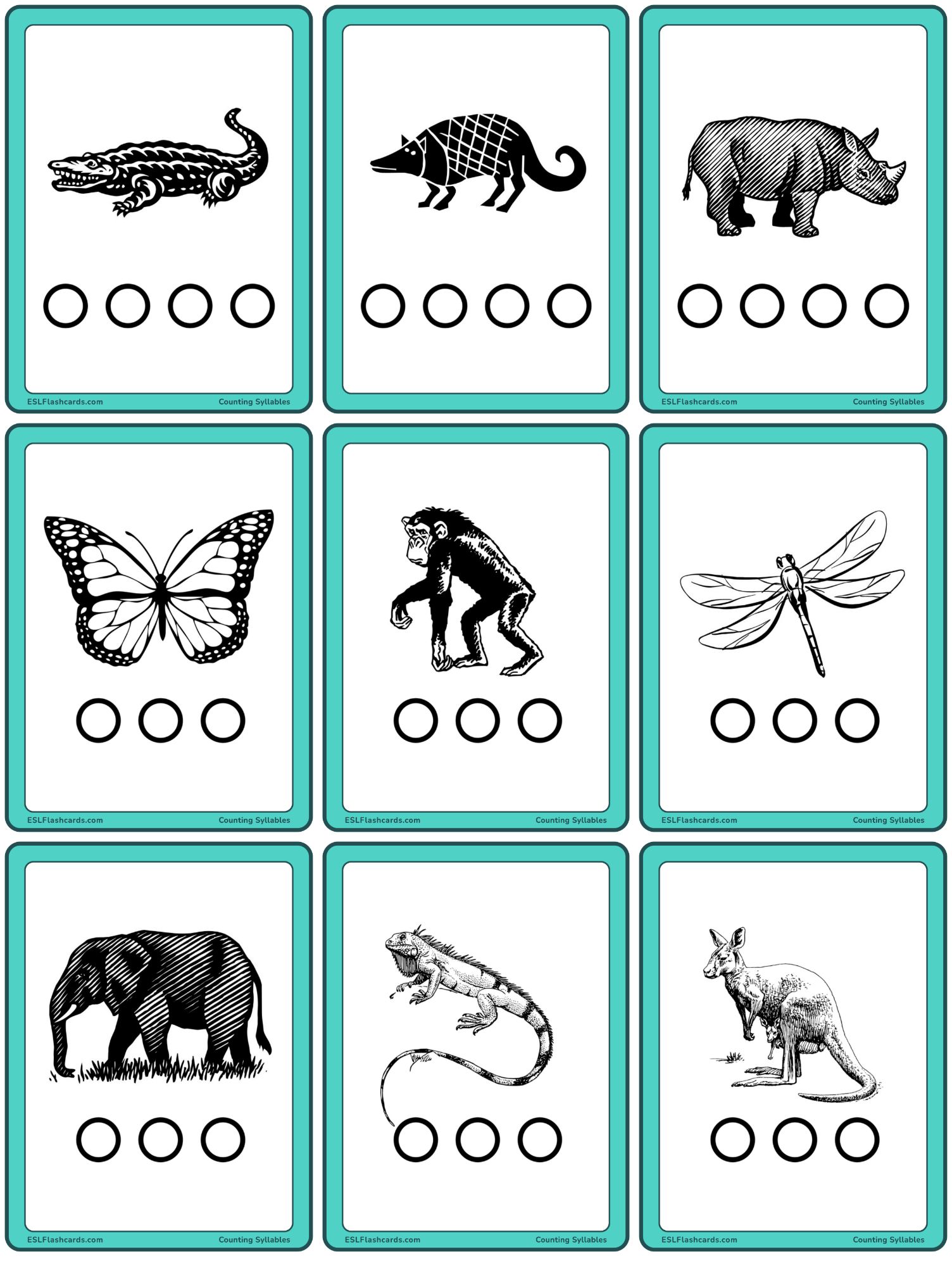This set of cards pilfers the larger Animals A to Z Flashcard Set, NOT for the purpose of teaching animal vocabulary, but in order to practice syllable division. These cards are a mixture 4- 3- 2- and 1-syllable words that happen to all be animals.