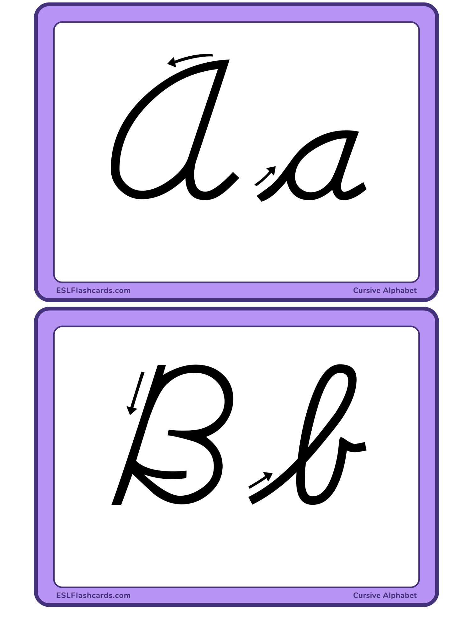 - Separate print letters for making double-sided cards (cursive on one side, printing on the reverse)