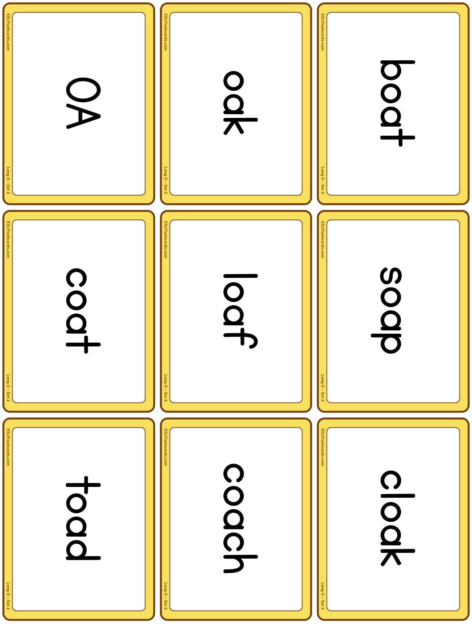 Words with long A, I, and O that use the final e pattern (as in: make, bite, rope) appear in their own card sets. For additional practice with final e, try the Final E Word Pairs set.