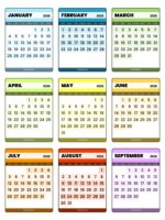 The small-sized calendars print nine months per page, so you’ll need two pages to print the whole year. The small size is best for handouts, pair work and small group activities. With the three last months on one side of the paper, there will be space left over for writing notes.