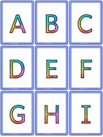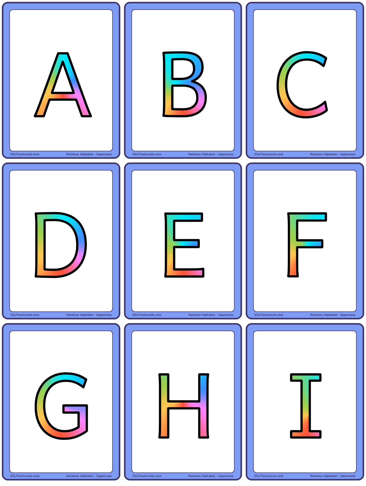 These rainbow alphabet cards have a bright border and simple letter shapes.