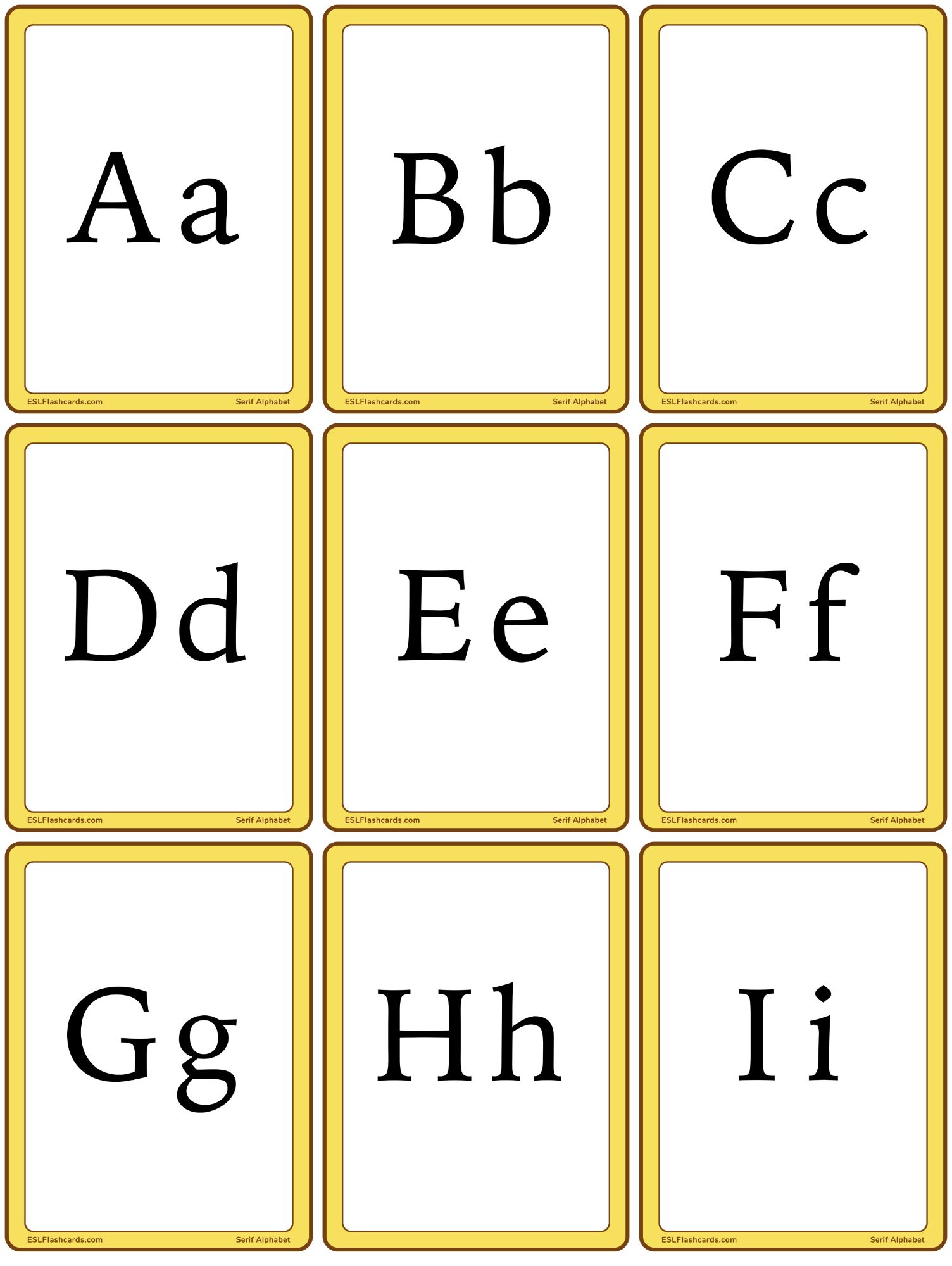 These easy-to-read serif alphabet flashcards are for people who would like to teach letters that look less “primary”.