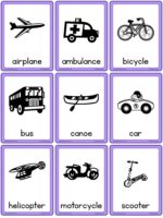 Here is a little set of vehicle flashcards. All the images in this set are simple, black and white icons.