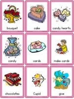 This collection of Valentine’s Day flashcards includes both nouns and a couple verbs.